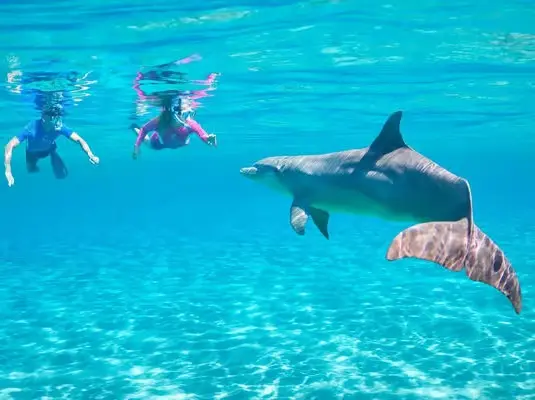 10:30 AM – Dolphin Encounter & Snorkeling: Swim near dolphins in their natural habitat (subject to sea conditions).