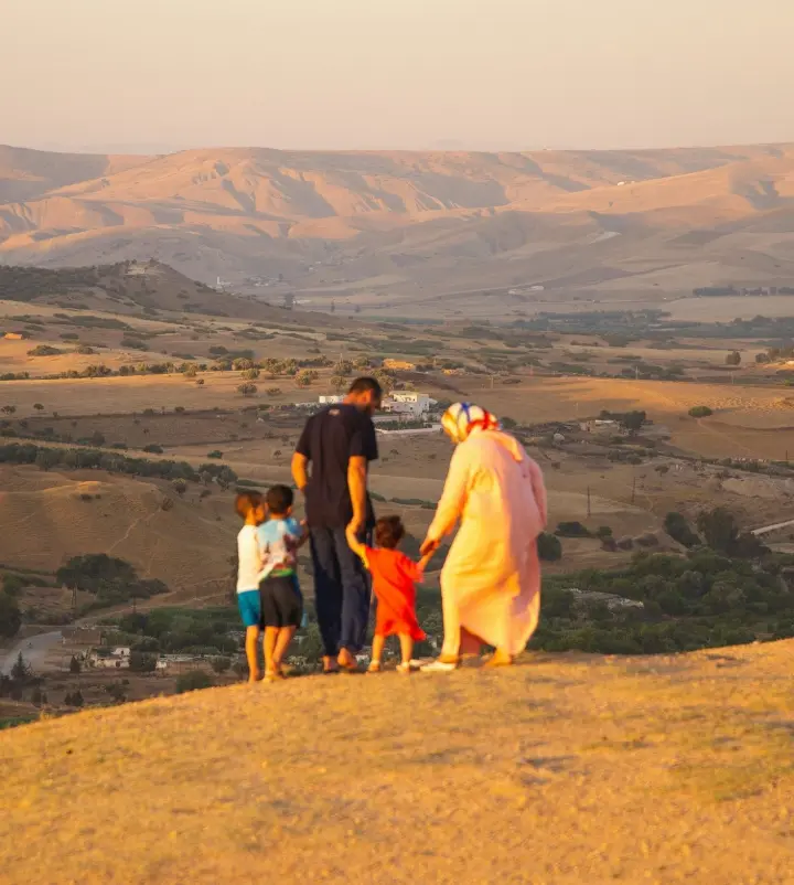 Erlebt einen goldenen Sonnenuntergang, der die Wüste in ein wahres Kunstwerk verwandelt – perfekt für unvergessliche Familienfotos.